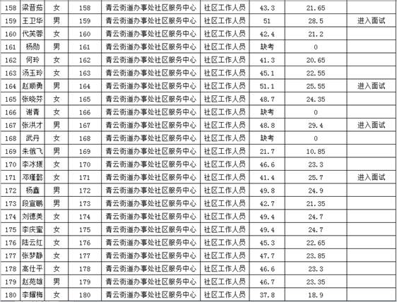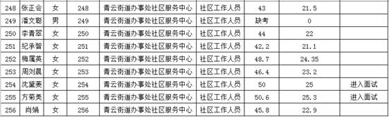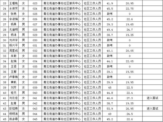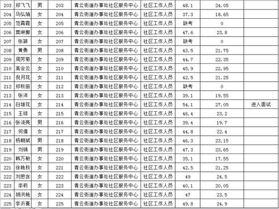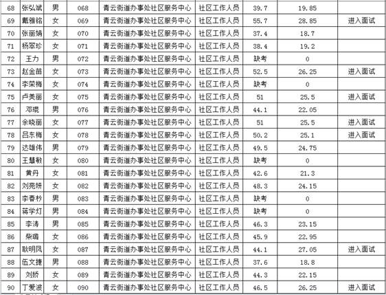 2015年公開招聘社區(qū)工作人員筆試成績公示