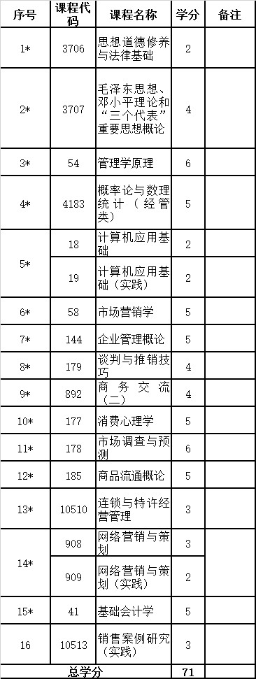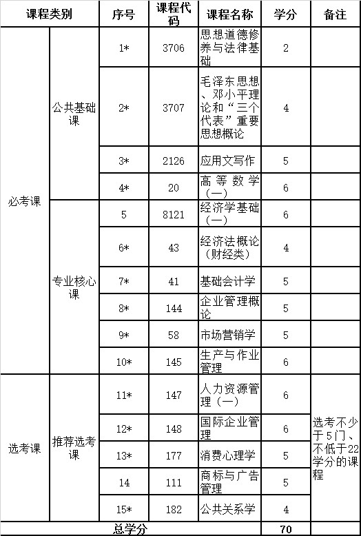 2.高等教育自學(xué)考試銷(xiāo)售管理專(zhuān)業(yè)(獨(dú)立本科段)課程設(shè)置