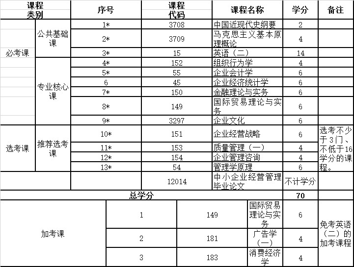 高等教育自學(xué)考試中小企業(yè)經(jīng)營(yíng)管理專(zhuān)業(yè)(獨(dú)立本科段)課程設(shè)置