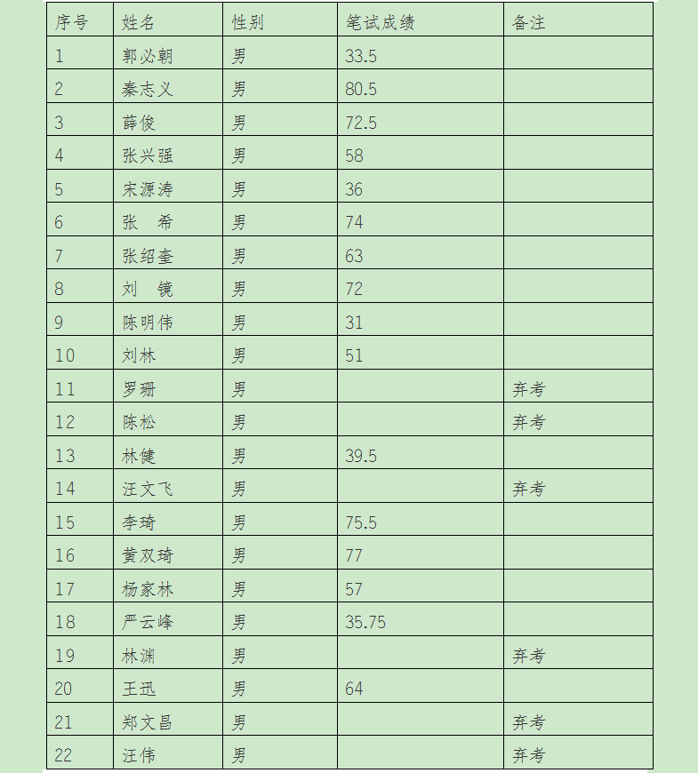 根據(jù)《昭通市煤炭工業(yè)局公開招聘省屬企業(yè)在昭通煤礦駐礦安監(jiān)員通告》相關規(guī)定,昭通市煤炭工業(yè)局公開招聘省屬企業(yè)在昭通煤礦駐礦安監(jiān)員筆試閱卷、復核工作已經(jīng)結束,現(xiàn)將考生筆試成績、進入面試人員名單和面試相關事項通告如下。