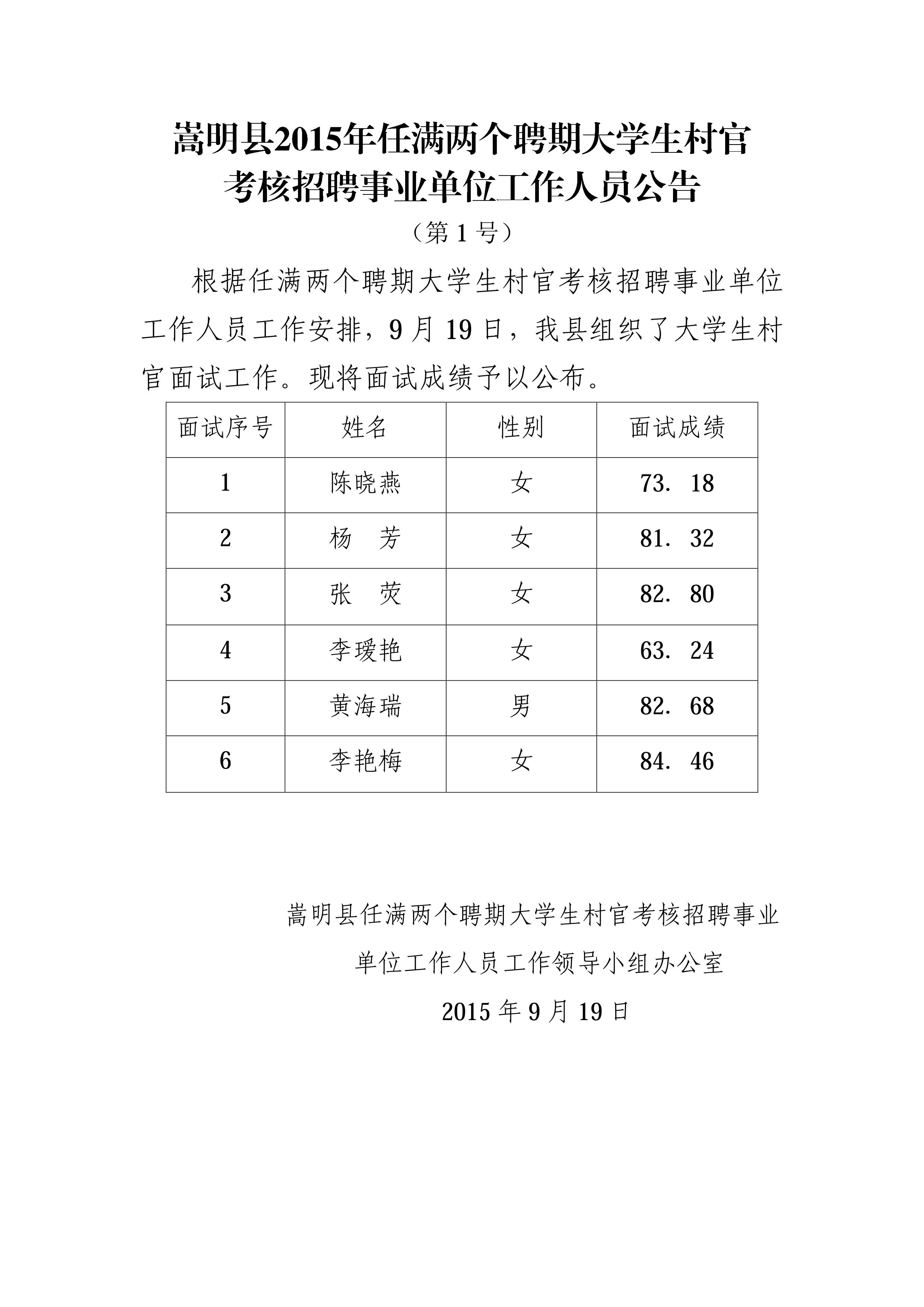 嵩明縣2015年任滿兩個聘期村官招聘事業(yè)單位人員公告