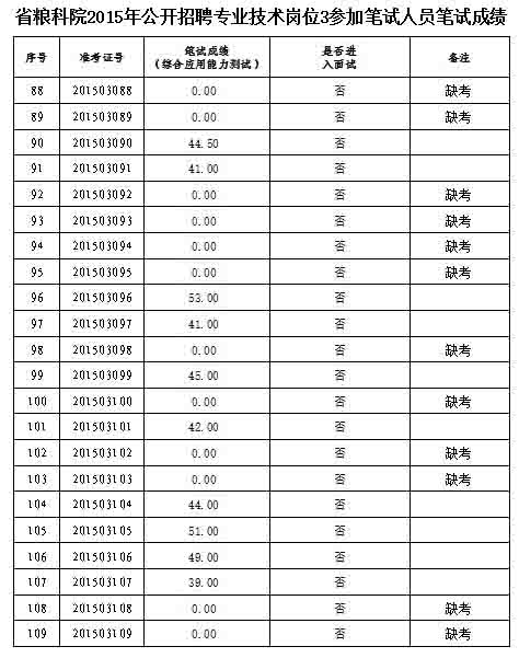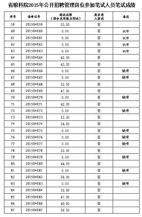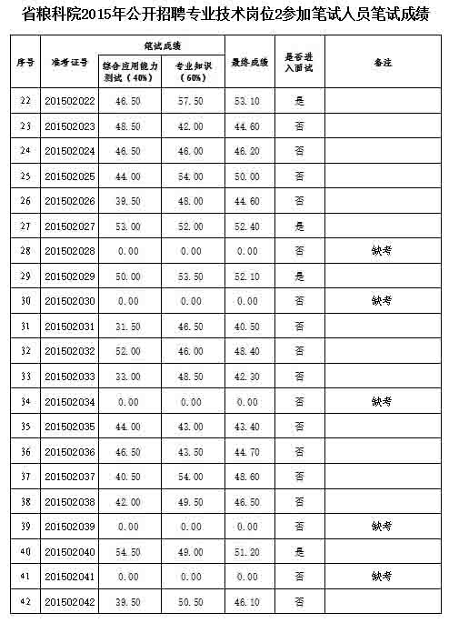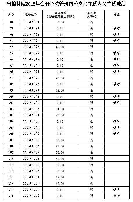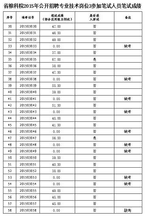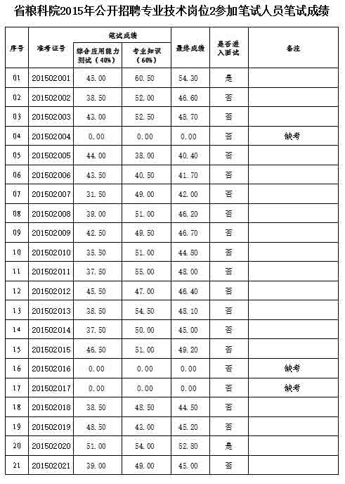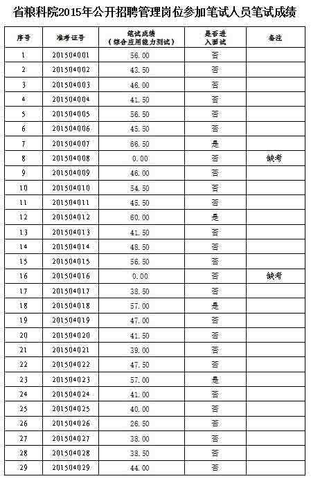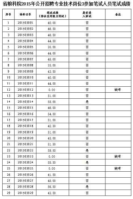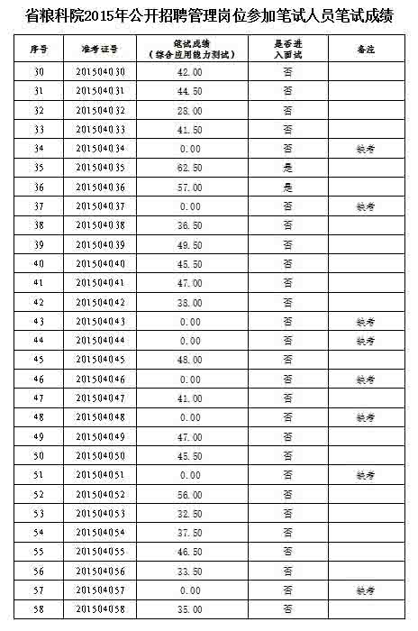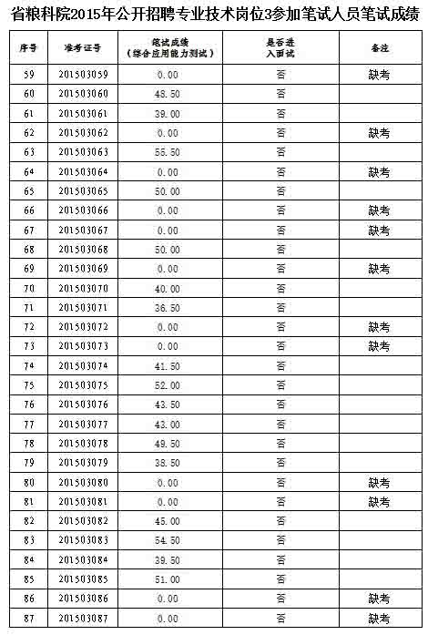 云南省糧油科學研究院2015年公開招聘筆試成績公示