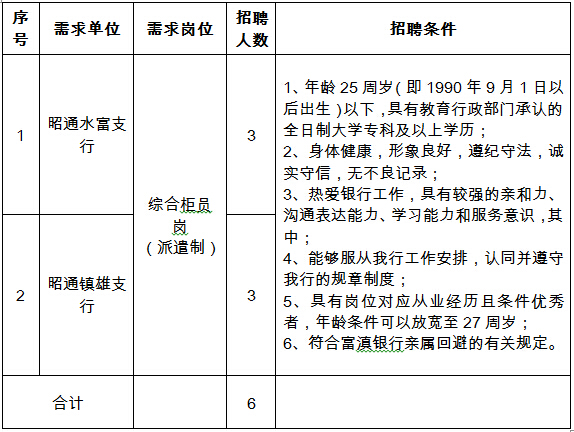 因業(yè)務(wù)發(fā)展需要,富滇銀行昭通分行現(xiàn)招聘能力強、素質(zhì)高的社會專業(yè)人才,提升經(jīng)營管理,誠邀您加盟,與我們共同發(fā)展!