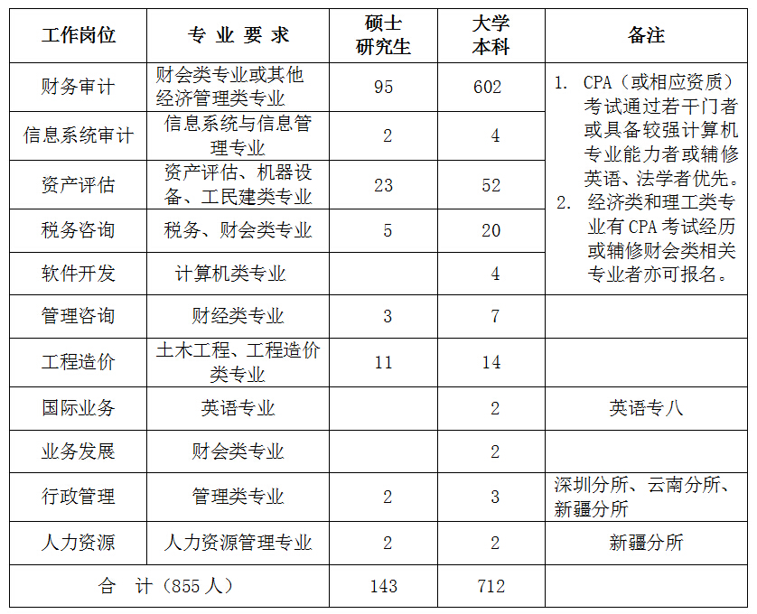 招聘下列專業(yè)對口、學(xué)業(yè)優(yōu)秀(本科生班級成績排名男女各前10名)、英語CET-6的2016屆大學(xué)本科一本、碩士畢業(yè)生共855人: