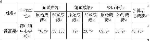 根據(jù)總成績,按照崗位從高分到低分順序,以1:1的比例確定湯富堯?yàn)榭己丝疾烊诉x。