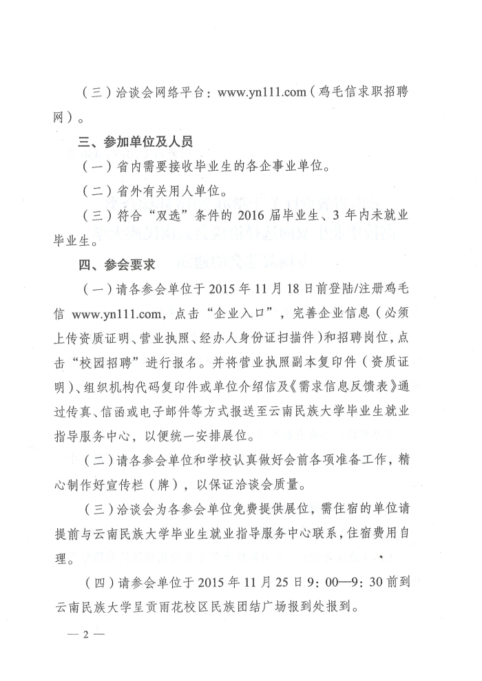 雙向選擇洽談會云南民族大學(xué)專場雙選會的通知