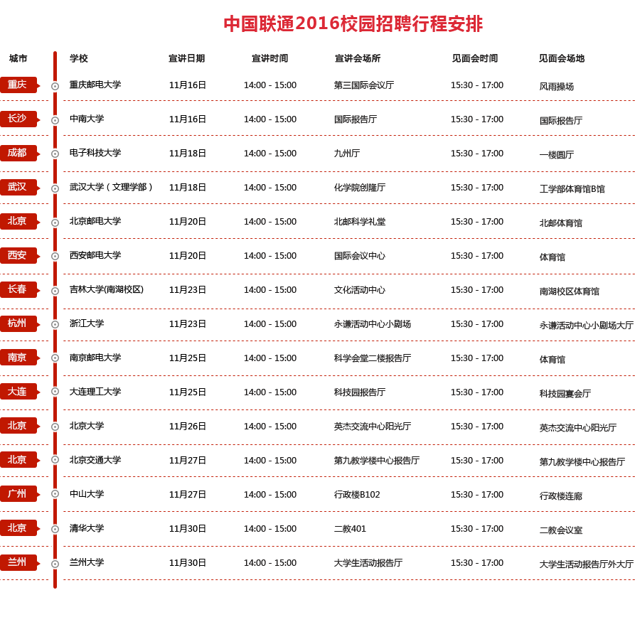 本次招聘由中國聯(lián)通集團(tuán)所屬子分公司根據(jù)招聘計劃,自行組織筆試面試。各單位將根據(jù)簡歷篩選情況,安排學(xué)生參加筆試、面試。我們將通過電子郵件或短信方式進(jìn)行通知。您也可以通過中國聯(lián)通招聘網(wǎng)站進(jìn)行查詢各子分公司的筆面試通告。