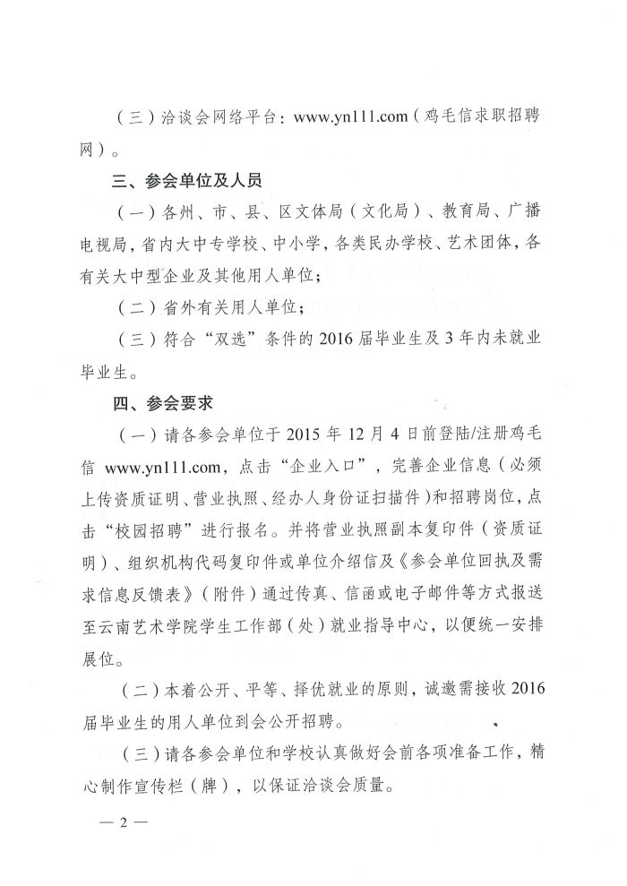 云南省2016屆藝術(shù)類高校畢業(yè)生和畢業(yè)研究生雙向選擇洽談會通知