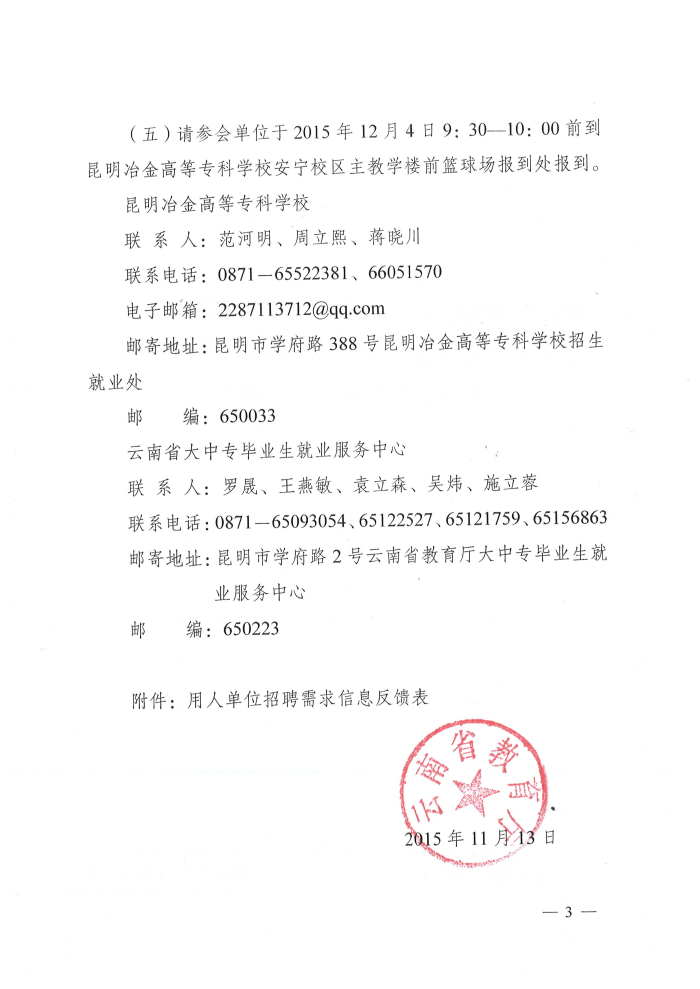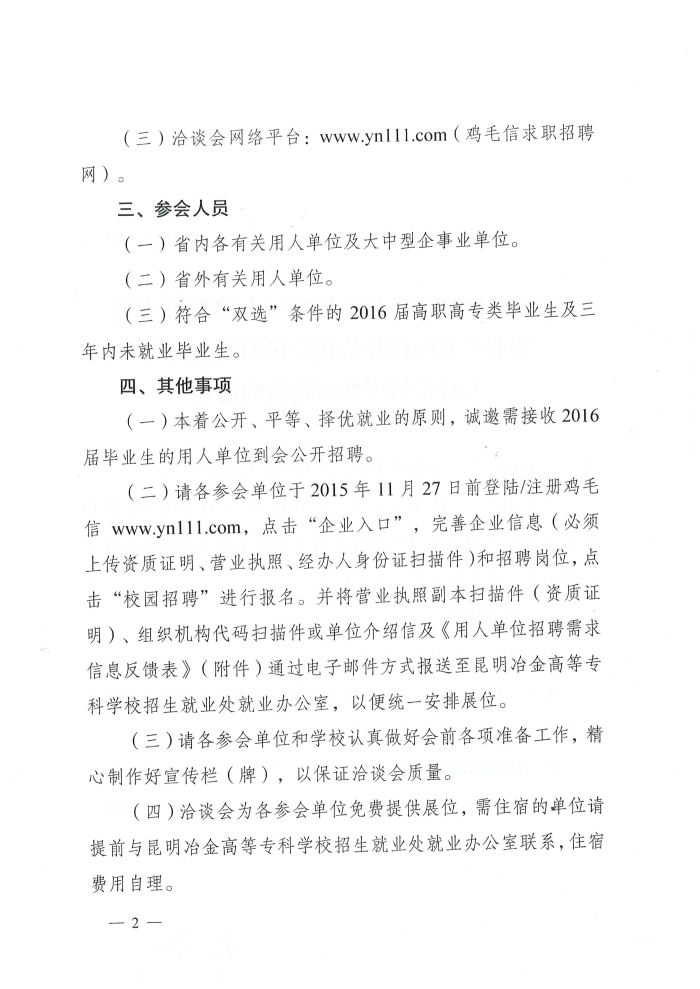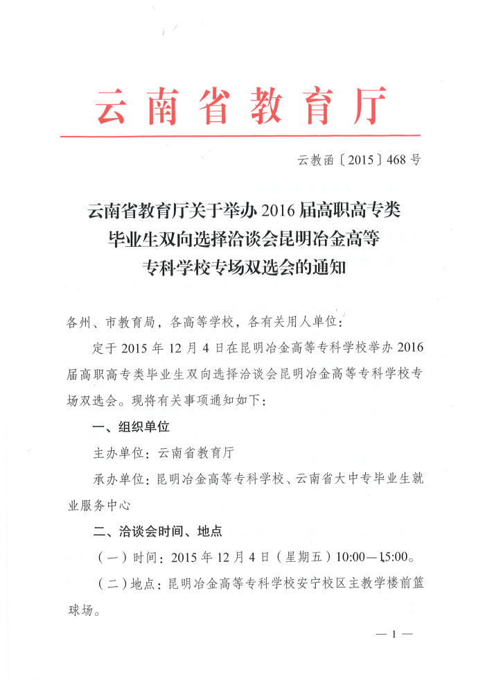 雙向選擇洽談會(huì)昆明冶金高等??茖W(xué)校專場(chǎng)雙選會(huì)的通知