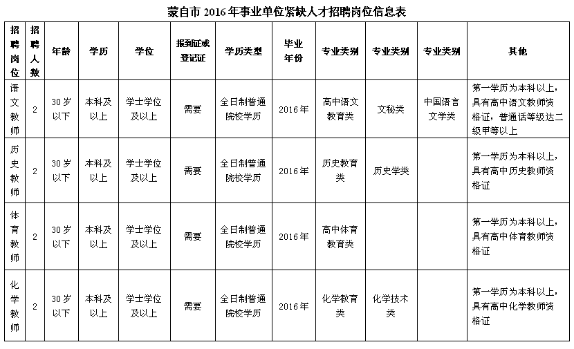 紅河州蒙自一中2016年引進緊缺人才招聘的通知