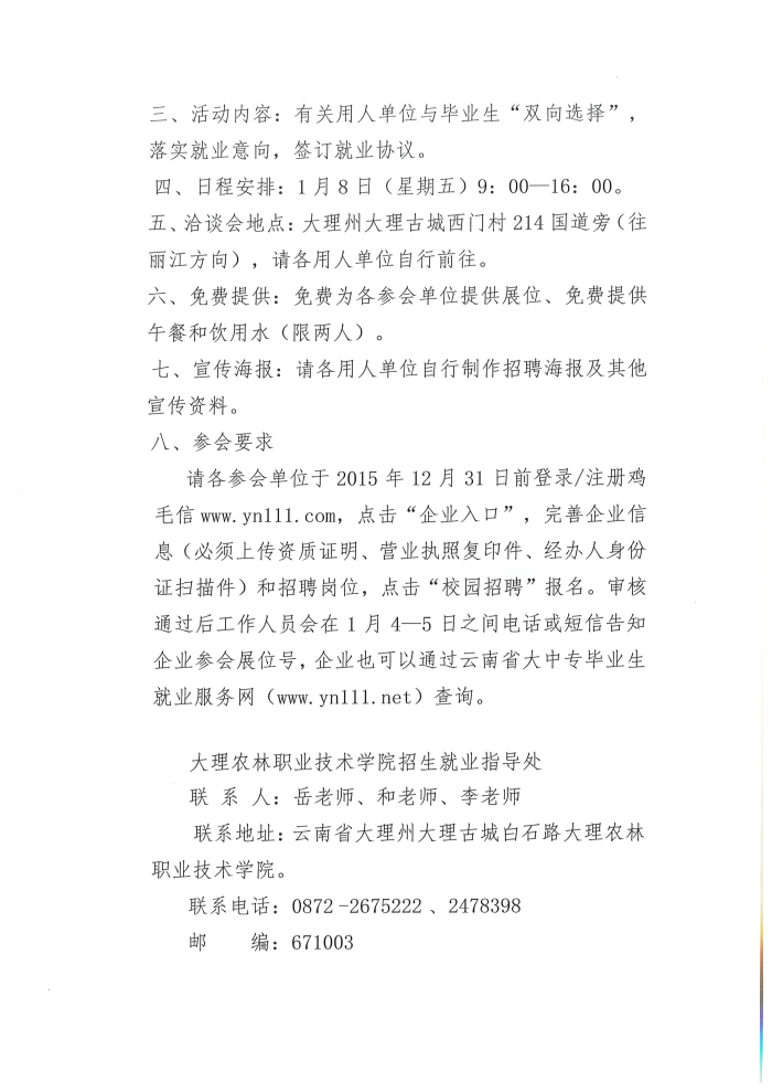 大理農(nóng)林職業(yè)技術(shù)學(xué)院2016屆畢業(yè)生雙向選擇洽談會邀請函