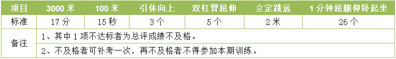 根據(jù)民航局要求,男生在取得安全員執(zhí)照前須參加民航局組織的安全員初始訓(xùn)練考核,體能考核項(xiàng)目及標(biāo)準(zhǔn)為:
