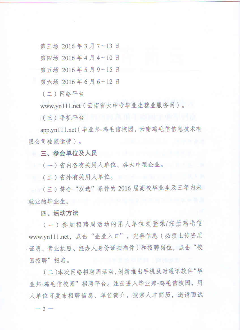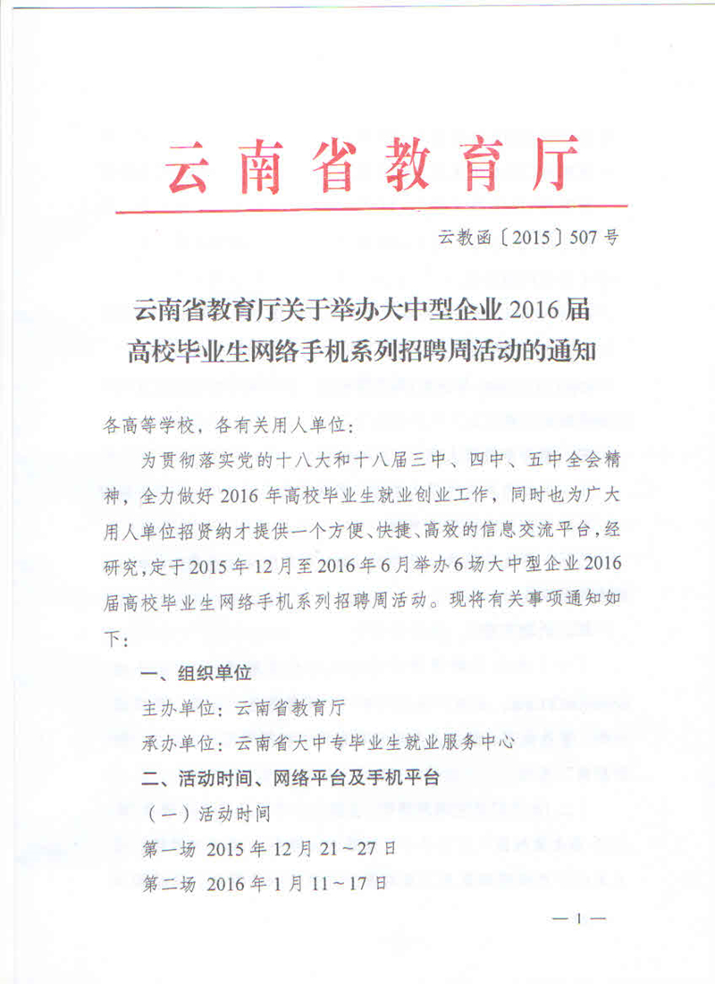 云南省2016屆高校畢業(yè)生網(wǎng)絡(luò)手機(jī)系列招聘周活動通知