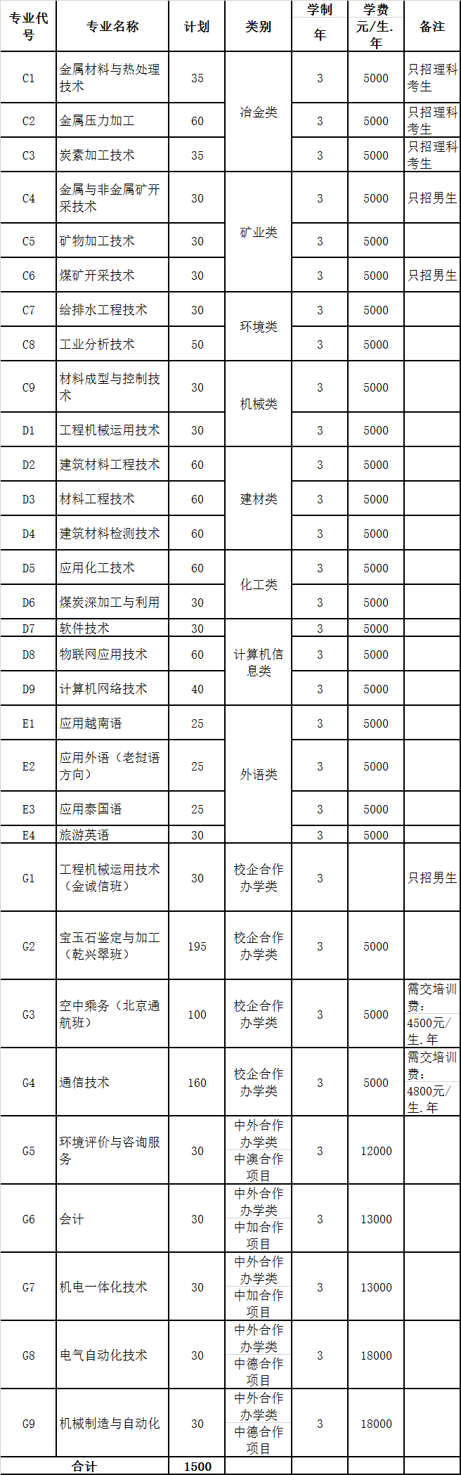 (一)招生計(jì)劃:1500人。