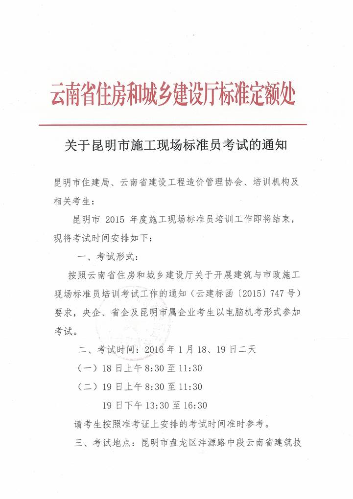 2015年昆明市施工現(xiàn)場標準員考試通知