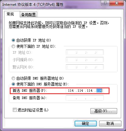 2)更改DNS服務(wù)器設(shè)置:114.114.114.114