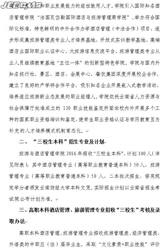 云南財經(jīng)大學旅游與酒店學院2016年三校生招生簡章