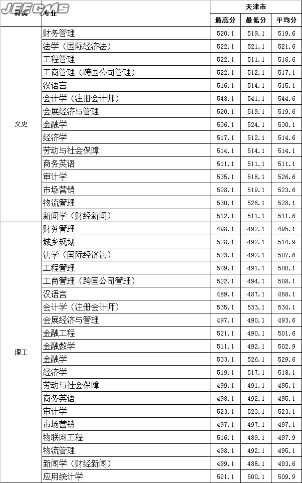 云南財(cái)經(jīng)大學(xué)2015年天津市錄取情況一覽表