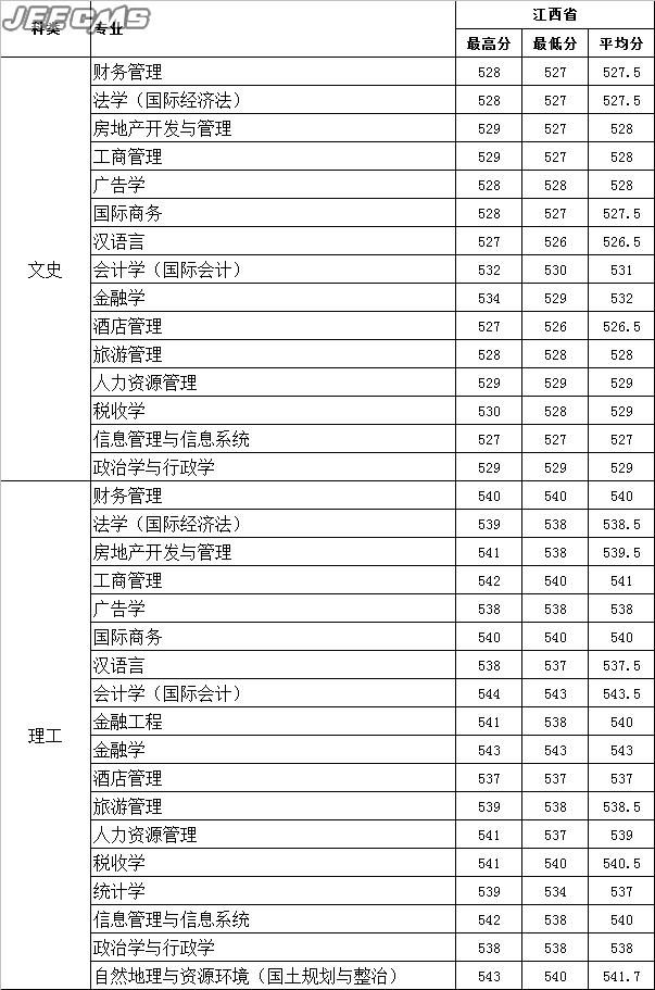 云南財經(jīng)大學(xué)2015年江西省錄取情況一覽表