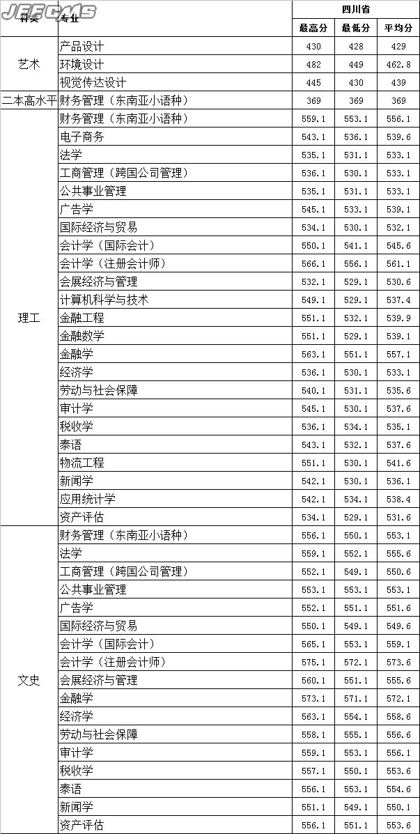 云南財經(jīng)大學(xué)2015年四川省錄取情況一覽表