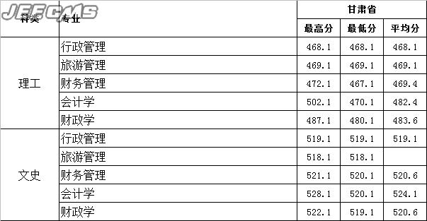 云南財經(jīng)大學(xué)2015年甘肅省錄取情況一覽表