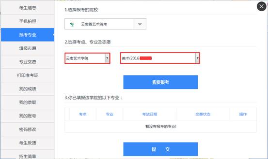 云南藝術(shù)學(xué)院2016年藝術(shù)類(lèi)專(zhuān)業(yè)報(bào)名系統(tǒng)操作說(shuō)明