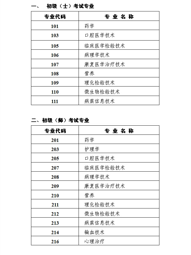 2016年衛(wèi)生專(zhuān)業(yè)技術(shù)資格考試人機(jī)對(duì)話(huà)考試專(zhuān)業(yè)目錄