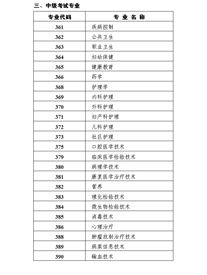 2016年衛(wèi)生專(zhuān)業(yè)技術(shù)資格考試紙筆考試專(zhuān)業(yè)目錄