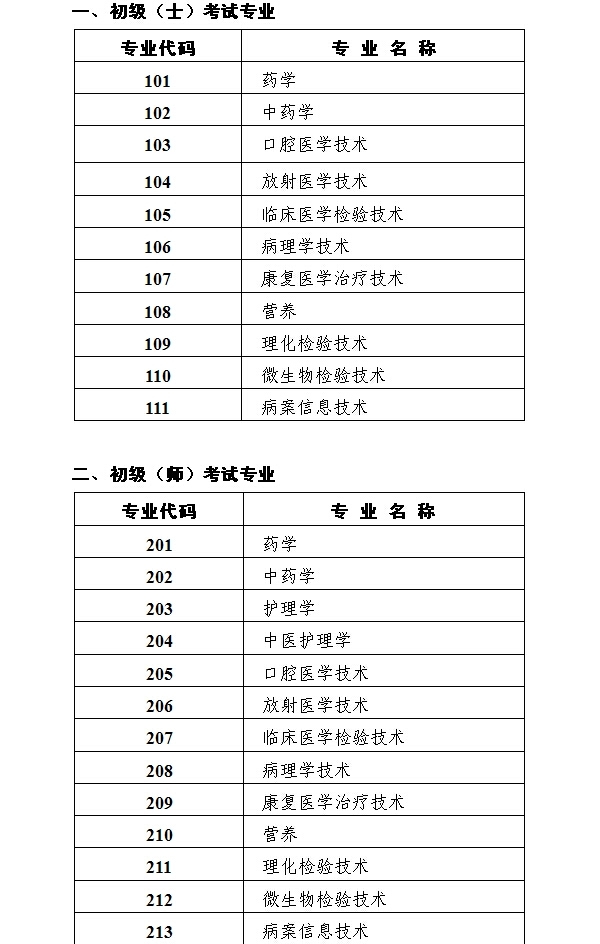 2016年衛(wèi)生專業(yè)技術資格考試專業(yè)目錄