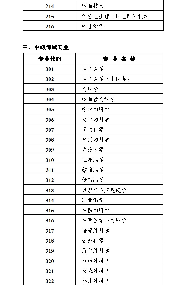 2016年衛(wèi)生專業(yè)技術資格考試主亞專業(yè)設置目錄(西醫(yī)類)