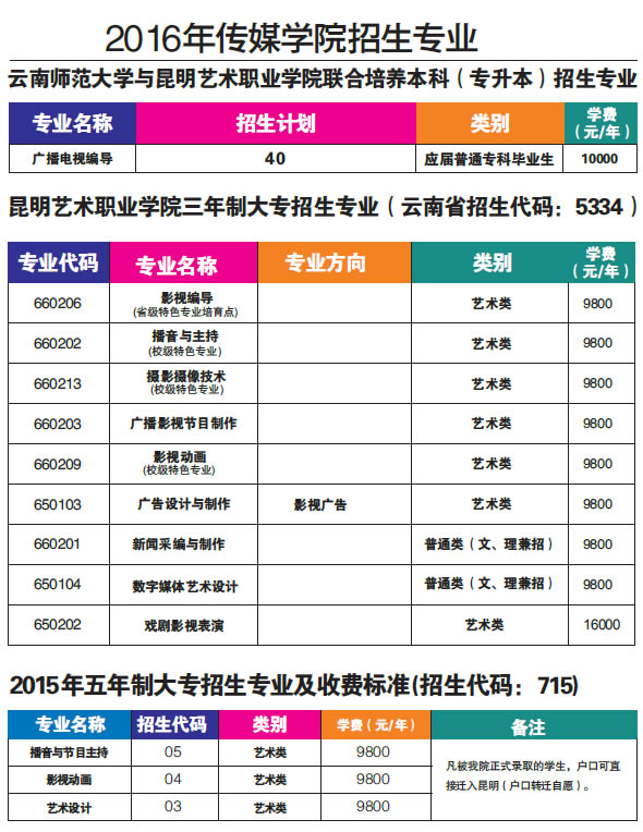 昆藝傳媒學(xué)院2016年招生簡(jiǎn)章
