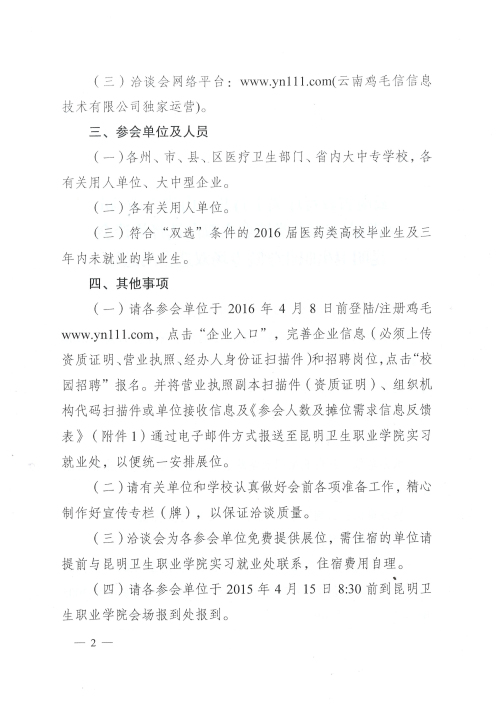 云南省2016屆高職高專醫(yī)藥類(lèi)畢業(yè)生雙向選擇洽談會(huì)通知