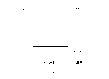 場地器材:10米長的直線跑道若干,在跑道的兩端線(S1和S2)外30厘米處各劃一條線(圖1)。木塊(5厘米×10厘米)每道3塊,其中2塊放在S2線外的橫線上,一塊放在S1線外的橫線上。秒表若干塊,使用前應(yīng)進(jìn)行校正。