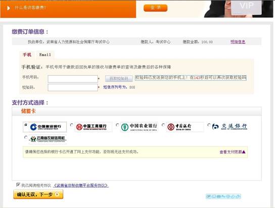 輸入手機號碼獲取驗證碼后選擇“支付銀行” 核對繳款人繳費信息,核對無誤,點擊“確認無誤,下一步”跳轉(zhuǎn)圖4