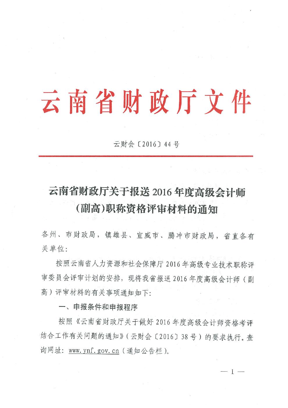云南省2016年高級會計(jì)師(副高)職稱資格評審材料通知