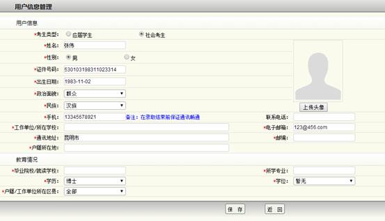 2、進(jìn)入資料維護(hù)根據(jù)自身個人信息,仔細(xì)填報各個帶*號的必填項(xiàng)。對于應(yīng)屆畢業(yè)生,學(xué)位可以填暫無和教師資格欄設(shè)有應(yīng)屆畢業(yè)生正在辦理一欄;對于社會考生,需要填寫相關(guān)的資格和編號。