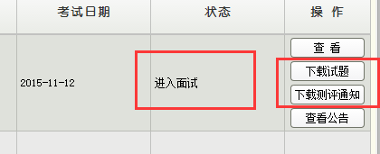 當(dāng)考生通過資格審核并且繳費(fèi)確認(rèn)完成后,就能夠分配考場與考試時間,考場與考試時間分配完成后進(jìn)入面試這個階段,登陸后就能看見下載測評通知書與下載測評文件的按鈕
