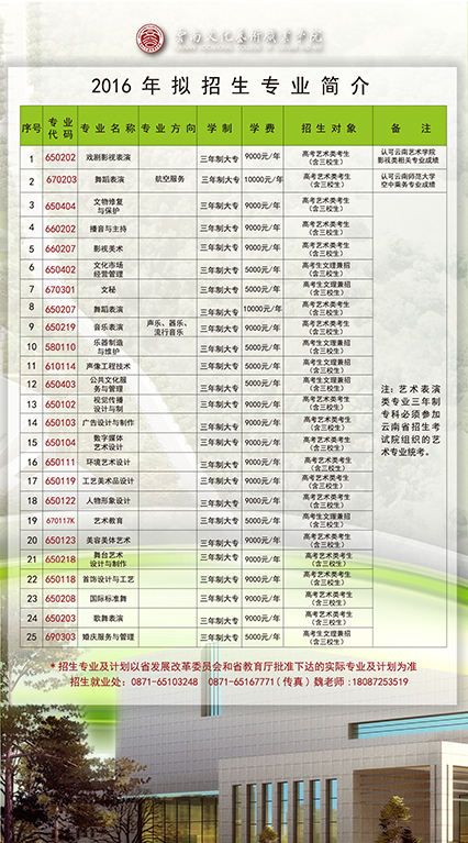 2023年云南文化藝術職業(yè)學院各專業(yè)單