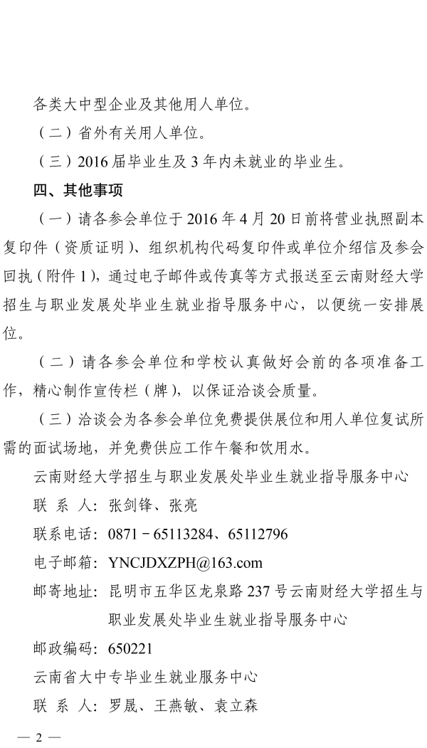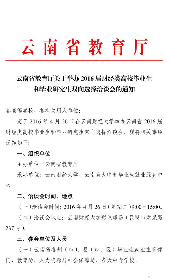 2016屆財經類高校畢業(yè)生云南財經大學雙向選擇洽談會