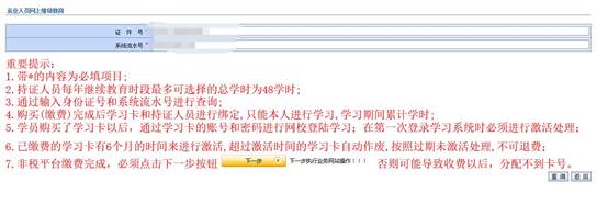 2014年未參加繼續(xù)教育登記或換證的,需提供2013年—2016年繼續(xù)教育培訓(xùn)的有效證明材料(繼續(xù)教育累計學(xué)滿96學(xué)分,且成績合格,參加2013—2014年網(wǎng)絡(luò)學(xué)習(xí)的還需提供本人學(xué)習(xí)卡),方可進行補換證。