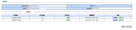 系統(tǒng)會顯示該人員的所有訂單,根據(jù)訂單后面的操作進行處理即可,新購卡請點擊購卡;