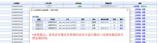顯示需要激活的卡片,以及學(xué)習(xí)中的卡片,請在激活有效期以前激活;點擊激活系統(tǒng)會跳轉(zhuǎn)到相應(yīng)的網(wǎng)校,請大家在網(wǎng)校頁面進行激活,網(wǎng)校激活的同時請在網(wǎng)校段修改密碼,已激活的學(xué)習(xí)卡系統(tǒng)不在顯示密碼.