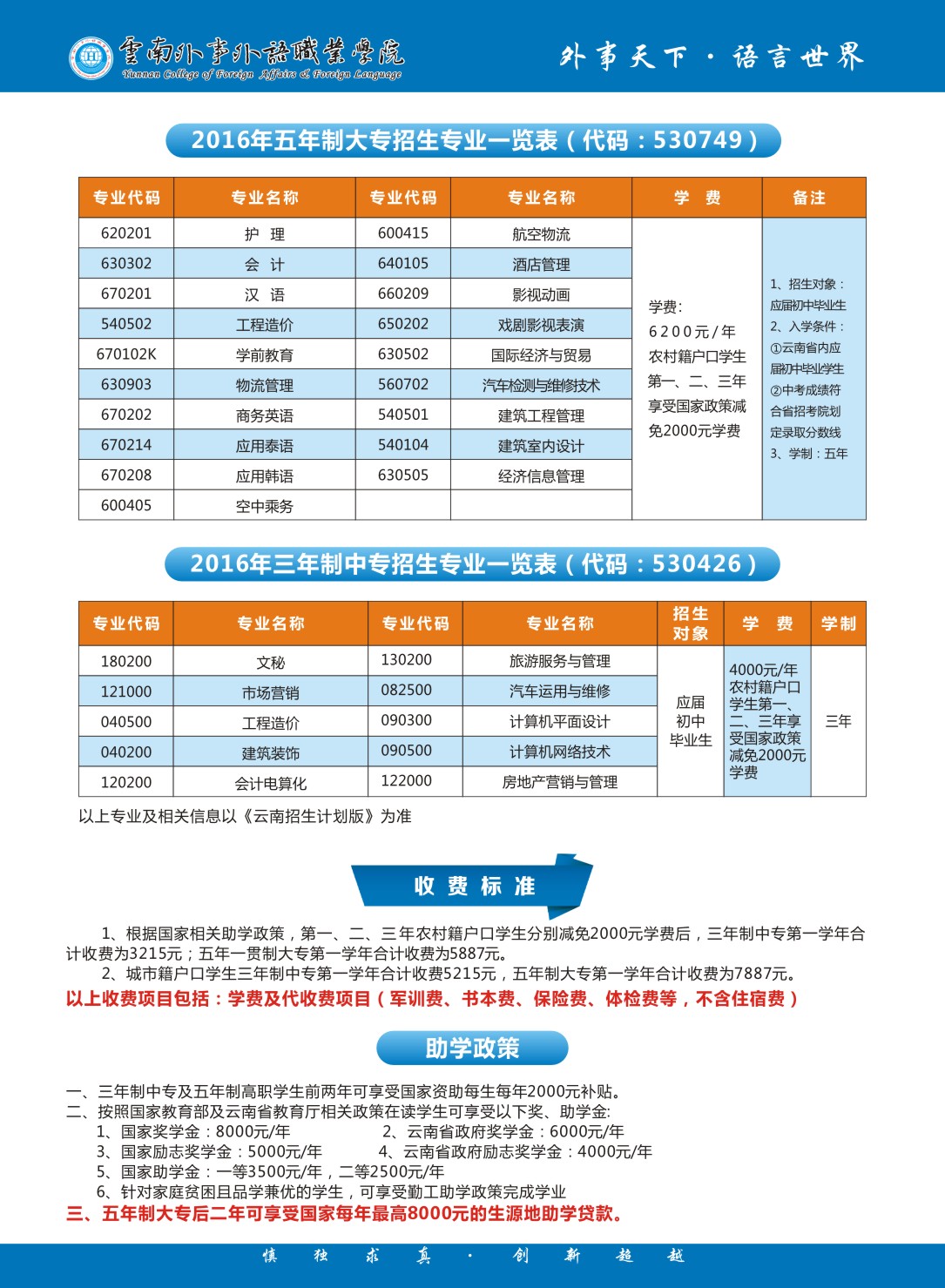 2016年云南外事外語(yǔ)職業(yè)學(xué)院中專及五年制大專招生簡(jiǎn)章