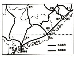 福建省委、省政府提出“建設(shè)海峽西岸經(jīng)濟區(qū)”這一戰(zhàn)略構(gòu)想,中心目標(biāo)就是發(fā)展福建經(jīng)濟,在一個更大的范圍內(nèi)進行生產(chǎn)結(jié)構(gòu)和資源配置,為全面實現(xiàn)兩岸“三通”,建設(shè)臺灣海峽經(jīng)濟圈奠定基礎(chǔ)。圖11是廈深鐵路示意圖,讀圖回答第28~29小題。