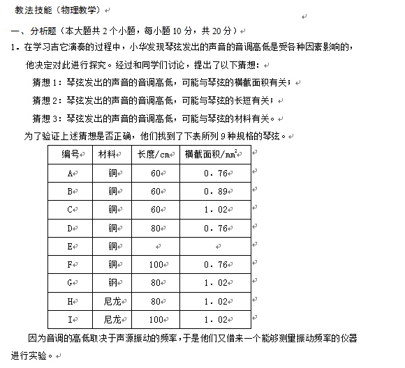 考試形式:閉卷,筆試。“專業(yè)知識”滿分100分, 考試用時100分鐘;“教法技能”滿分50分,考試用時50分鐘。二者合卷滿分150分,考試限定用時150分鐘。