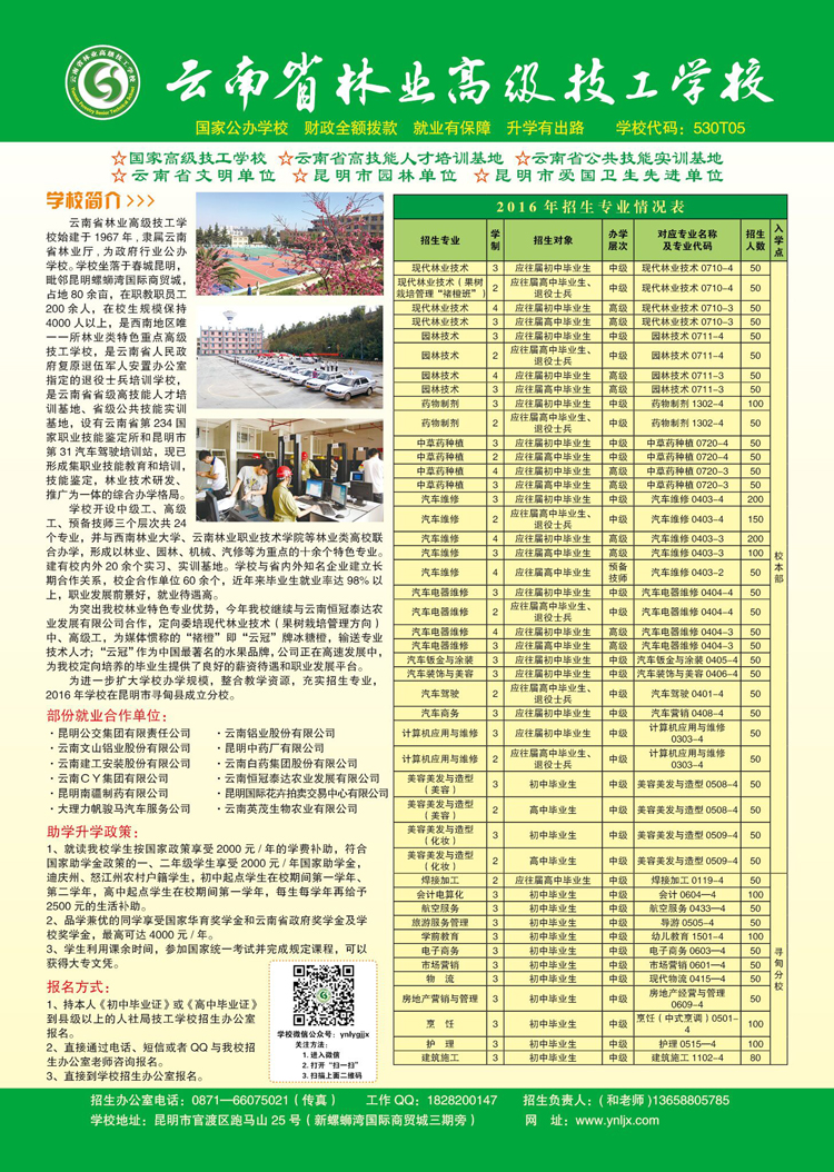 云南省林業(yè)高級(jí)技工學(xué)校2016年秋季招生簡(jiǎn)章