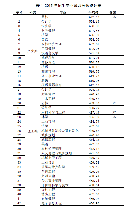 西南林業(yè)大學(xué)2015年本科專業(yè)錄取分?jǐn)?shù)分析