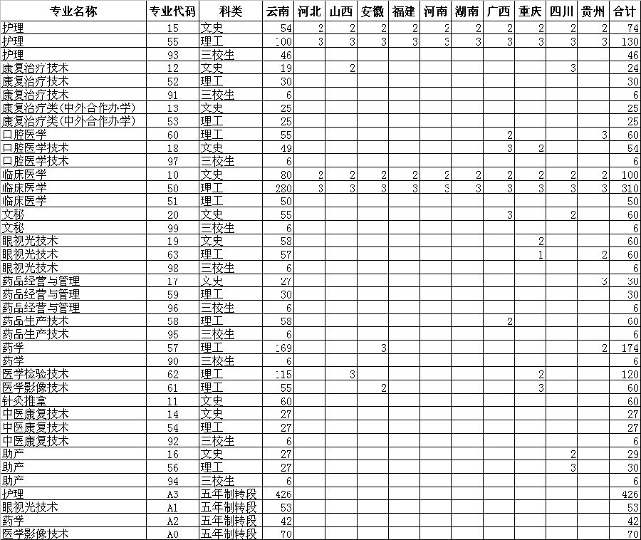 曲靖醫(yī)學(xué)高等??茖W(xué)校2016年普通??朴?jì)劃招生計(jì)劃