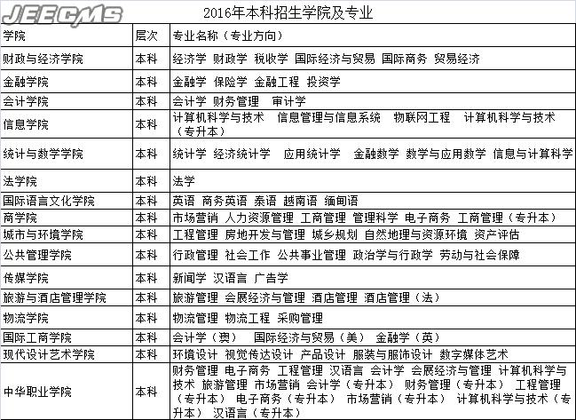 云南財經(jīng)大學2016年普高招生學院及專業(yè)
