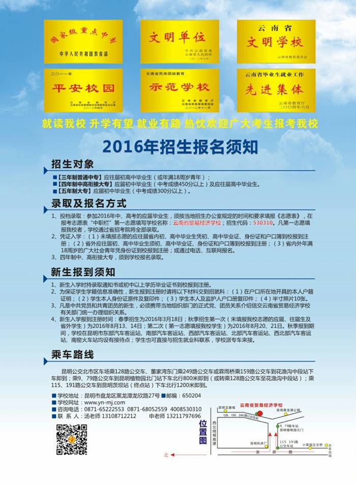 云南省貿(mào)易經(jīng)濟學校2016年招生公告